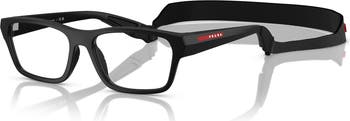 Prada Linea Rossa 56mm Rectangle optical glasses, Alternate, color, Black