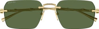 Bamboo-inspired texture enriches the temples of rimless sunglasses shaped in a rectangular profile and featuring adjustable nose pads for customized wear.