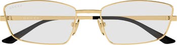 Subtle logo accents bring a signature flourish to sleek rectangular sunglasses featuring polished goldtone frames and adjustable nose pads for a customized fit.