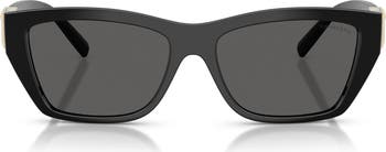 Signature T-logo hardware glints at the hinges of Italian-made sunglasses shaped in a rectangular profile with subtle hexagon-shaped temple ends.