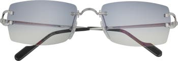 Rimless rectangular sunglasses get their glam from gleaming temples in a sleek, streamlined design.