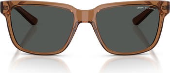 Signature logo hardware highlights the translucent temples on Italian-made sunglasses shaped in a classic square silhouette with smoky lenses.