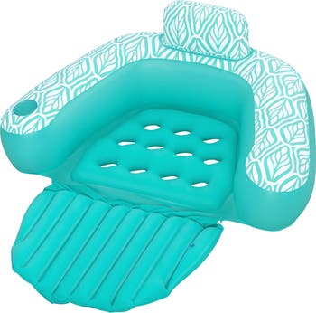 COMFORT PLUSH: DELUXE CHAIR LOUNGE - 57" X 47" - Lay back, relax and recharge while enjoying the breathable fabric that coats the H2OGO! Comfort Plush Deluxe Chair Lounge. The luxurious velvety material gives the float a smooth and soft texture, while also keeping the surface from getting too hot - perfect for a warm day at the pool! Plus, when placed in water, the colors intensify for a cool and eye-catching effect. The innovative structure of this lounge allows you to customize your comfort by laying across the lounge or by folding in the footrest to make a supportive raised seat. With enhanced ventilation air pockets to keep you cool and an ultra-cushioning wraparound backrest, you’ll be able to relax the day away in both style and comfort! Plus, a built-in cup holder allows you to keep your favorite drink or snack conveniently close. A quick release 2-way valve is built into the structure to provide simple and efficient inflation and deflation, and folds up nicely to store during the off season. The luxurious Comfort Plush Deluxe Chair Lounge is the ultimate way to unwind on the water! Soft, velvet-like Comfort Plush surface is smooth, non-stick and keeps the material from getting too hot under the sun. Size: 52 in. x 44.5 in. x 16.5 in. Material color brightens and intensifies when placed in water. Comfortable footrest folds in for a supportive raised seat, combined with an oversized wraparound backrest. 1 cup holder to keep drinks and snacks conveniently close. Easy to inflate, deflate and store.