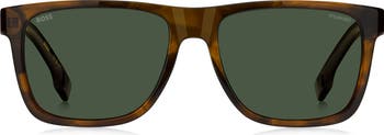 Enjoy the minimalist appeal of these sleek square sunglasses fitted with glare-reducing polarized lenses that make them perfect for wearing on bright, sunny days.