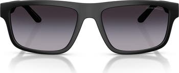 Subtle logos add a signature flourish to the temples of everyday sunglasses shaped in a slim rectangular profile and fitted with gradient lenses.