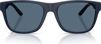 Clean, squared-off lines define these polarized sunglasses fitted with prescription-ready lenses and full UV protection.
