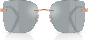 Minimalist rimless square frames deliver clean lines and modern structure, paired with a streamlined saddle bridge and lightweight metal temples featuring a signature Sculpted C logo. Made for a low-bridge fit and finished with lenses that offer 100% UV protection.