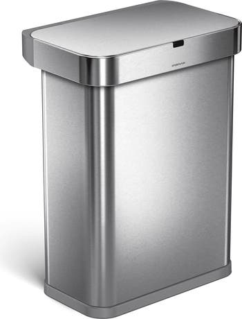 simplehuman 58L rectangular sensor can with voice and motion control, Main, color, Brushed