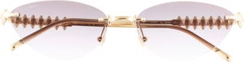 A rimless design brings barely there minimalism to oval sunglasses fitted with adjustable nose pads and artfully crafted in France.