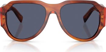 Angular pilot frames and logo-branded temples distinguish Italian-made sunglasses fitted with glare-reducing polarized lenses.