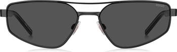 A rectangular geometric silhouette defines everyday sunglasses outfitted with a double bridge and logo-marked temples for a signature touch.