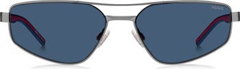 A rectangular geometric silhouette defines everyday sunglasses outfitted with a double bridge and logo-marked temples for a signature touch.