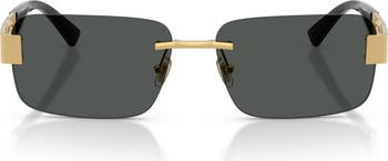 Frameless rectangular sunglasses are punctuated by signature branding at the start of each temple and finished with adjustable nose pads for the perfect fit.