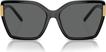 Angular square frames amplify the retro appeal of stylish sunglasses complete with bold logo hardware at the temples.