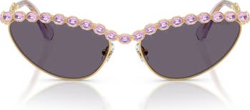 A stream of bezel-set crystals runs across the brow bridge and along the temples of these cat-eye sunglasses with adjustable nose pads for easy wear.