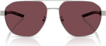 Angular metal frames and a double bridge distinguish Italian-made sunglasses fitted with adjustable nose pads and a logo inspired by F1 car details at the temples.