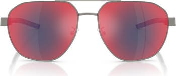 Angular metal frames and a double bridge distinguish Italian-made sunglasses fitted with adjustable nose pads and a logo inspired by F1 car details at the temples.