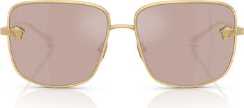 Signature Medusa heads gleam along the sleek metal frames of Italian-made sunglasses shaped in a bold square profile and fitted with adjustable nose pads.