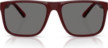 Signature logos and racing-inspired stripes brand the temples of Italian-made square sunglasses fitted with glare-reducing polarized lenses.