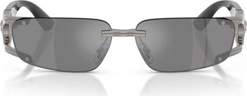 Gleaming Medusa-head hardware at the temples adds a signature luxurious touch to these rimless rectangular sunglasses crafted in Italy.