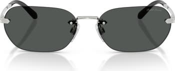 Subtle logo script and etched temples enrich Italian-made sunglasses featuring rimless rectangular frames and adjustable nose pads for customized wear.