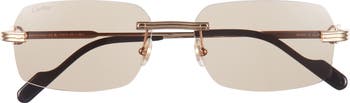 Rimless rectangular sunglasses get their glam from gleaming temples in a sleek, streamlined design.