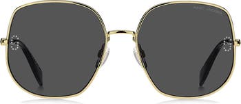 Striking square frames, rhinestone-embellished lenses and slender temples define logo-branded sunglasses made with full-coverage UV protection.