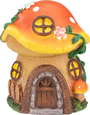 This cute mushroom house adds a touch of whimsy to your outdoor space. Bright colors and the perfect size make it a must have from season to season. Perfect in your garden or patio. Mushroom house outdoor garden statue Made from durable weather resistant resin For indoor or outdoor use Dimensions: 6.25"H x 5.25"W x 5"D Material(s): resin