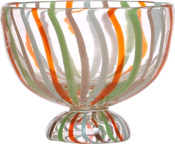 6.75 Inches Hand-Painted Glass Footed Bowl with Stripes