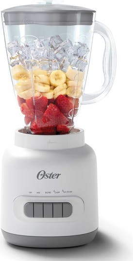 Make your favorite smoothies, milkshakes, salsas, and more right at home with this Oster 6 Cup 5 Speed Plastic Jar Easy To Use Blender. The BPA Free plastic jar holds up to 6 cups of items and with the 700 watt ice crushing power all metal drive, you'll be able to blend anything you desire. The base has 5 speeds to choose from with easily labelled buttons so you can have the perfect consistency for any recipe. When you're finished, the plastic jar is dishwasher safe making for effortless cleanup. Any recipes or sweet treats you have in mind will be yours with this versatile countertop blender.