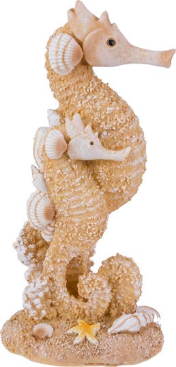 The 6" Double Seahorse Coastal Decorative Tabletop Figure adds a charming coastal touch to any room in your home. Crafted with intricate details and a beautiful finish, this figurine showcases two gracefully intertwined seahorses, offering a playful yet sophisticated design. Ideal for those who love nautical or beach-inspired decor, it brings a refreshing ambiance to your living room, dining table, fireplace mantle, or bedroom. Made from durable materials, this double seahorse figurine is built to last while retaining its elegance over time. The versatile design makes it perfect for year-round use, whether you're looking to add a seasonal accent during summer or a timeless decorative piece for the rest of the year. Not just a decorative piece, this figurine is also an excellent gift option for those who appreciate coastal living. Whether as a housewarming gift, birthday surprise, or just because, it’s a thoughtful and stylish way to bring a piece of the ocean into any home. Add this delightful seahorse figurine to your collection and transform any space into a serene, beach-inspired retreat.