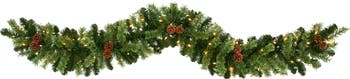6-ft Christmas Artificial Garland with 50 Clear LED Lights and Pine Cones