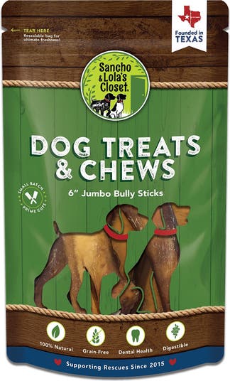 SANCHO & LOLA: BULLY STICKS - Made from top-grade grass-fed beef and hand sorted to ensure the highest quality. Bully sticks are a great calming chew. Dogs crave chewing so bully's are a great way to help reduce anxiety. They are digestible - made of beef muscle, this chew is easily digestible and great for sensitive stomachs. 100% Natural - Imperfection is a sign of a natural product. Our dog chews are hand- crafter. Every single chew is hand inspected by us. we are fresh and quality obsessed. They are made from one single ingredient - beef! No chemicals or fillers. SANCHO & LOLAS GIVE BACK: Since 2016 Lynette has been donating chews and cash to dog shelters and rescues. We are Family-owned & operate in North Texas. We specialize in dog products because plain and simple, we love dogs. We have a genuine passion for helping dog rescues but we've also helped dogs in crisis with no official rescue behind them. We are committed to offering single or limited-ingredient dog chews and treats that will help your pups thrive, not cause disease and inflammation.