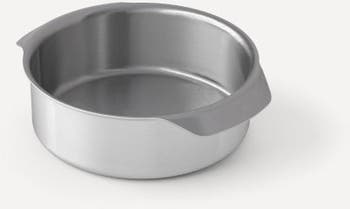 A durable alternative to stoneware, our thoughtfully designed 6-inch bakeware rounds move your quiches, cakes, and oven camembert from the heat source to the table gracefully. Crafted with tri-ply stainless steel, It can withstand temperatures of up to 1,000°F (583°C). It's a cake pan, grillware, and serveware all rolled into one.