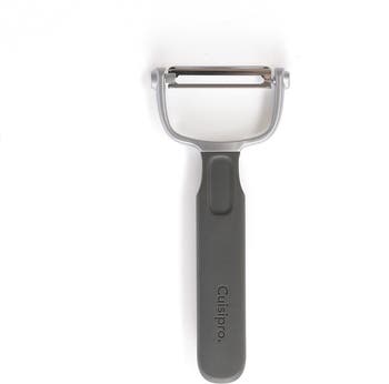 Experience effortless peeling with the Cuisipro Y Peeler—crafted for speed, precision, and everyday comfort. Its ultra-sharp 2-way blade glides through tough skins with ease, while the ergonomic curved handle with thumb and finger grooves provides a secure, strain-free grip. A wide blade gap prevents clogging, and the integrated eyer makes removing blemishes quick and easy, making prep faster, cleaner, and more efficient.
