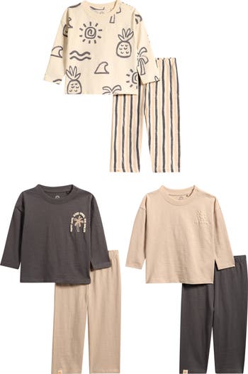 Get baby ready will be a breeze with this set of assorted long-sleeve T-shirts and coordinating pants cut from soft, breathable cotton.