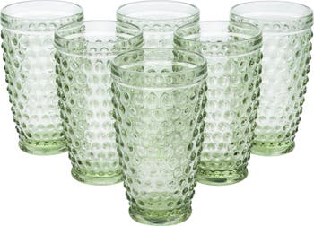 The Martha Stewart 6 piece tumbler set is constructed with handmade glass for durability and long lasting use. This set has a unique embossed polka dot design and a tinted green hue that will add a fun look to your table. This set comes complete with 6 tumblers in a stack-able design for easy cabinet storage. Add these accent tumblers to your every day drinkware for a touch of class and style! Item Dimensions: 3.25" x 3.25" x 5.75" Item Weight: 1.00lbs