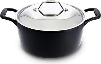 - Enameled cast iron with stainless steel lid