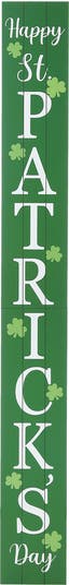 Bring a merry touch to your St. Patrick's day using this vertical porch leaner. It features printed Happy St. Patrick's day in white on a green background and slatted design. The words are also accepted with light green shamrocks, bring vibrant to your St Patrick's Day!
