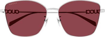 Inlaid logos at the temples bring a signature flourish to butterfly-shaped sunglasses rendered in polished metal and fitted with adjustable nose pads for secure wear.