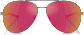 With a sporty silhouette and details inspired by race-car design, these mirrored aviator sunglasses make a bold statement on and off the track.