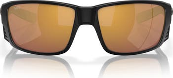 Polarized lenses ensure color-true clarity and reduced glare in smart mirrored sunglasses with polished logos at the temples.