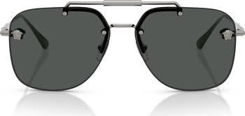 Rimless square sunglasses are punctuated by signature Medusa head logos and finished with an inverted bridge and adjustable nose pads for a customized feel.