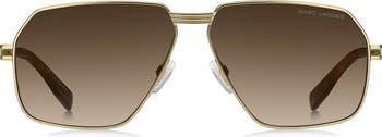 Angular navigator frames and gradient lenses bring distinct elements to retro-cool sunglasses featuring adjustable nose pads for a customized fit.