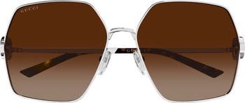 Interlocking logos add a signature flourish to the hinges of Italian-made sunglasses featuring angular rectangular frames with gradient lenses and adjustable nose pads.