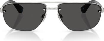 A double bridge and semirimless frames distinguish Italian-made sunglasses featuring smoky lenses and adjustable nose pads for convenient wear.
