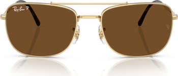 Polished metal frames and logo-debossed temples distinguish retro-cool sunglasses designed with adjustable nose pads and glare-reducing polarized lenses.