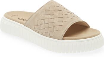 A woven leather upper adds eye-catching style to this slide sandal set on a contoured footbed and platform outsole for long-lasting comfort.