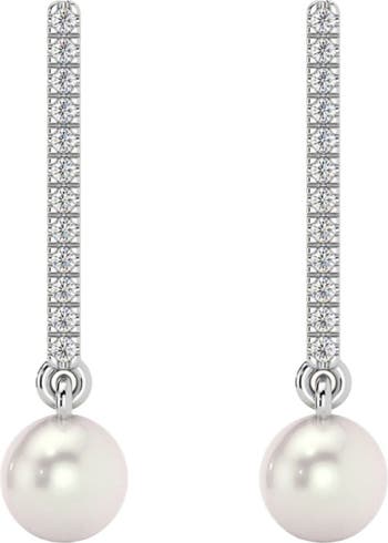 6mm Pearl & Diamond Dangle Earrings Women's 14k Gold Tennis Earrings Lab Grown