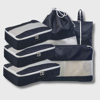 Are you tired of struggling to fit all your belongings into your suitcase? Do you dread the thought of unpacking and finding your clothes wrinkled and disorganized? Say goodbye to these travel woes with the French Connection 6pc Packing Cube Set - Travel Storage. Our luxurious set includes 4 packing cubes of various sizes, a shoe bag, and a laundry bag. These cubes are the perfect solution to maximizing luggage space while keeping your clothes and accessories neatly packed. No more messy suitcases or wrinkled clothes - everything will have its designated place in our efficient and stylish packing cubes. Our cubes are made with the modern traveler in mind. They are ultra-lightweight, water-resistant, tear-resistant, and designed to save space. The durable material ensures that your belongings are protected while traveling, and the sleek design adds a touch of sophistication to your packing routine. The set includes four different sizes of packing cubes, ideal for accommodating a variety of items such as clothes, toiletries, and electronics. The shoe bag and laundry bag are also essential for keeping your shoes and dirty laundry separate from your clean clothes. This set is perfect for any type of trip, whether it's a weekend getaway or a long vacation. Not only are our packing cubes functional, but they are also stylish. The French Connection 6pc Packing Cube Set features a sleek and modern design that will make you stand out in the airport. With this set, you can travel in style and be the envy of other travelers. So say goodbye to the stress and hassle of packing and unpacking. Invest in the French Connection 6pc Packing Cube Set - Travel Storage and experience the ease and organization it brings to your travels. Don't let the chaos of packing ruin your trip - let our set be your ultimate travel companion. Order now and make your next trip a breeze.